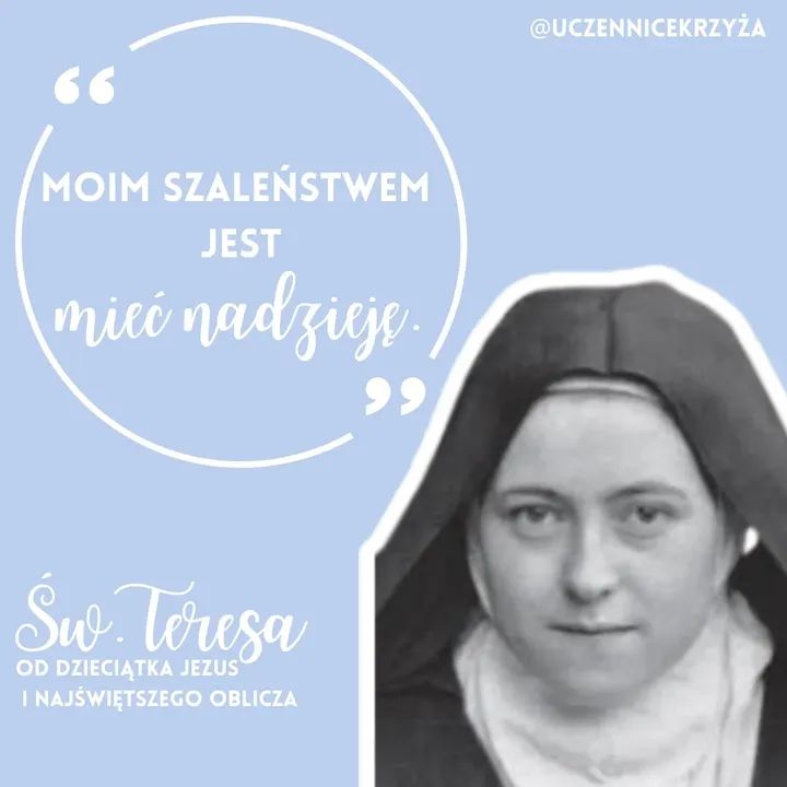 - 🔹️1 października to w naszej Wspólnocie święto jednej z naszych patronek – św. Teresy od Dzieciątka Jezus, która jest dla nas niedoścignionym wzorem życia kontemplacyjnego i gorliwości apostolskiej wyrażającej się w składaniu w ofierze za braci tego, co niesie życie.